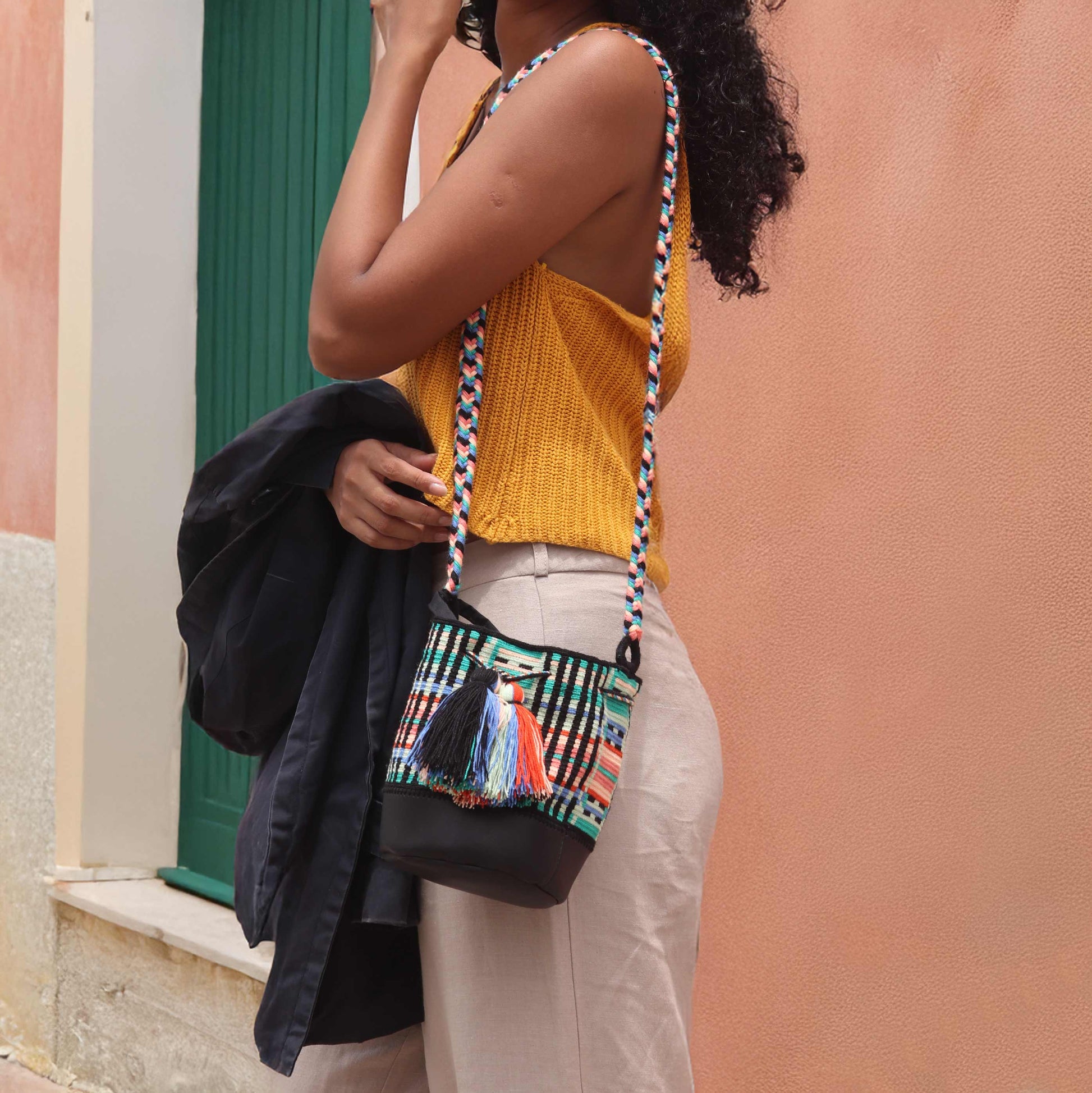 - Le fond et la bandoulière varient sur chaque sac, et sont la signature de la tisserande